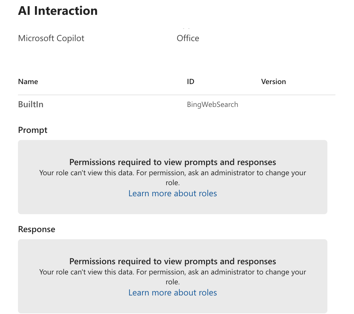 I quickly looked at the new tool and searched for any new documentation referencing it, but I came up empty. It seems similar to what I had seen before with the AI Hub. There’s just one question I’d love to get an answer to. When viewing Copilot activity in the Activity Explorer, I see this message about needing permissions: