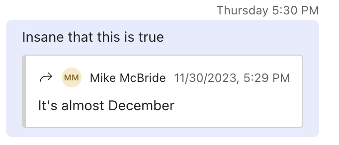 In Teams, the resulting message will look like this - similar to what it looks like when you forward an email.