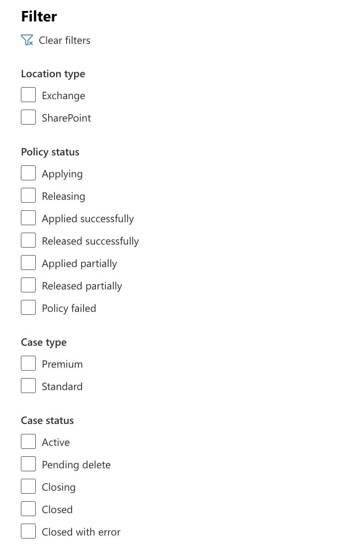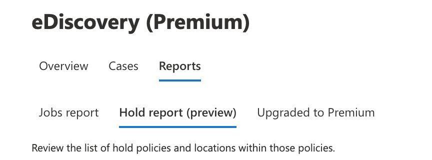 This did create another quibble for me, though. I want to see whether the hold was set using Standard or Premium eDiscovery on the report. Interestingly, I can filter based on which tool was used, so I’d love to see that on the list page.