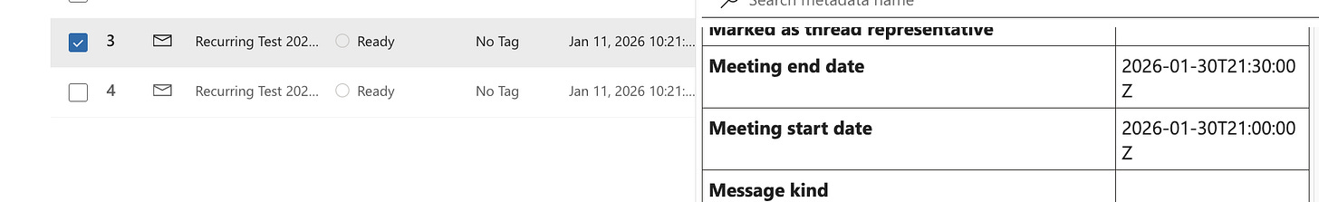 I’m suddenly looking at one of the items I would least likely consider to be important as an end user, the updated invite, as the only way an eDiscovery professional would be able to determine any future dates of this recurring meeting.