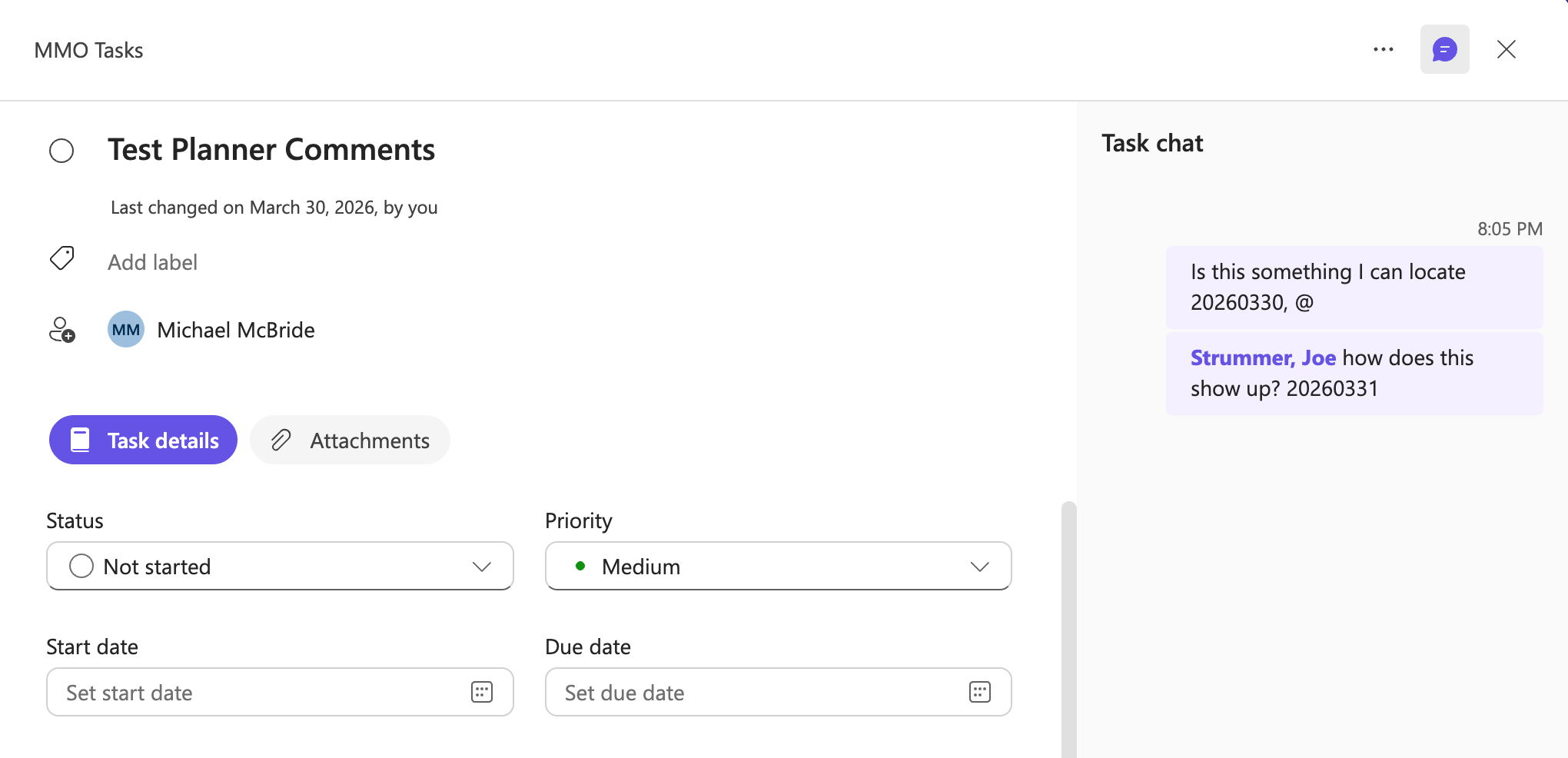 I saw it and had to test it. So, when I created a couple of messages in the task chat for a given Planner task, could I find them?