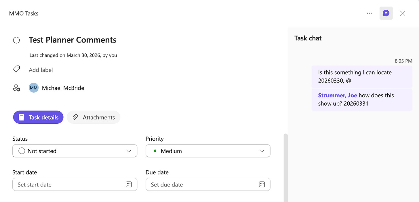 Maybe you’re normal, and you don’t see a new feature like chat inside of a Planner task and immediately wonder where that data lives and if it’s discoverable.