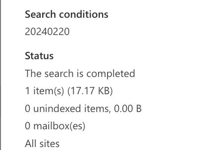 It reminded me that there is a massive difference between the search results you get using the native eDiscovery tools versus the internal search tools of each M365 workflow. Even a Global Administrator with access to all SharePoint sites could be missing some stuff. For example, I created a document with the code 20240220 in a SharePoint site that I hid from searching following Tony’s post’s instructions. Sure enough, I can’t find it using SharePoint search.