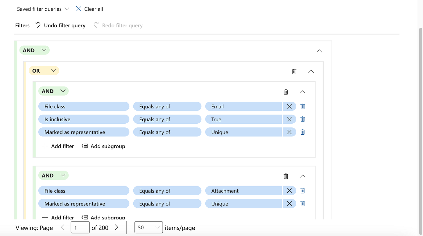 I did. But before we get into what I found, I have a question. Who designed this UI for a review set in Premium eDiscovery? I’ve seen some poorly designed interfaces in my time, but enabling this filter in a review set and trying to see the details of what it is doing is truly abysmal.
